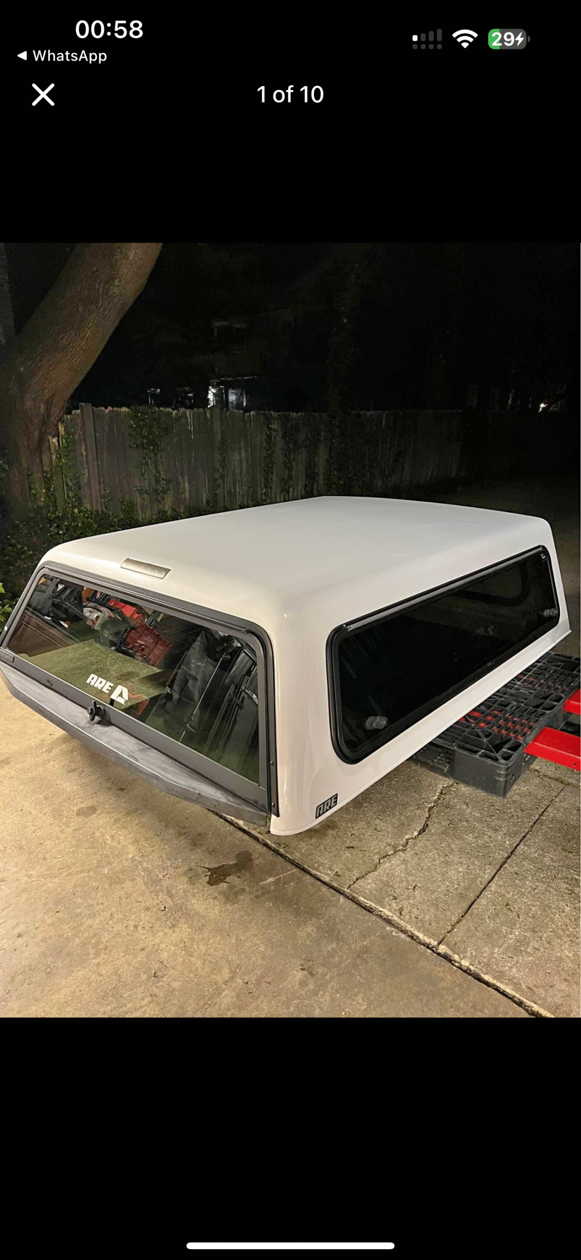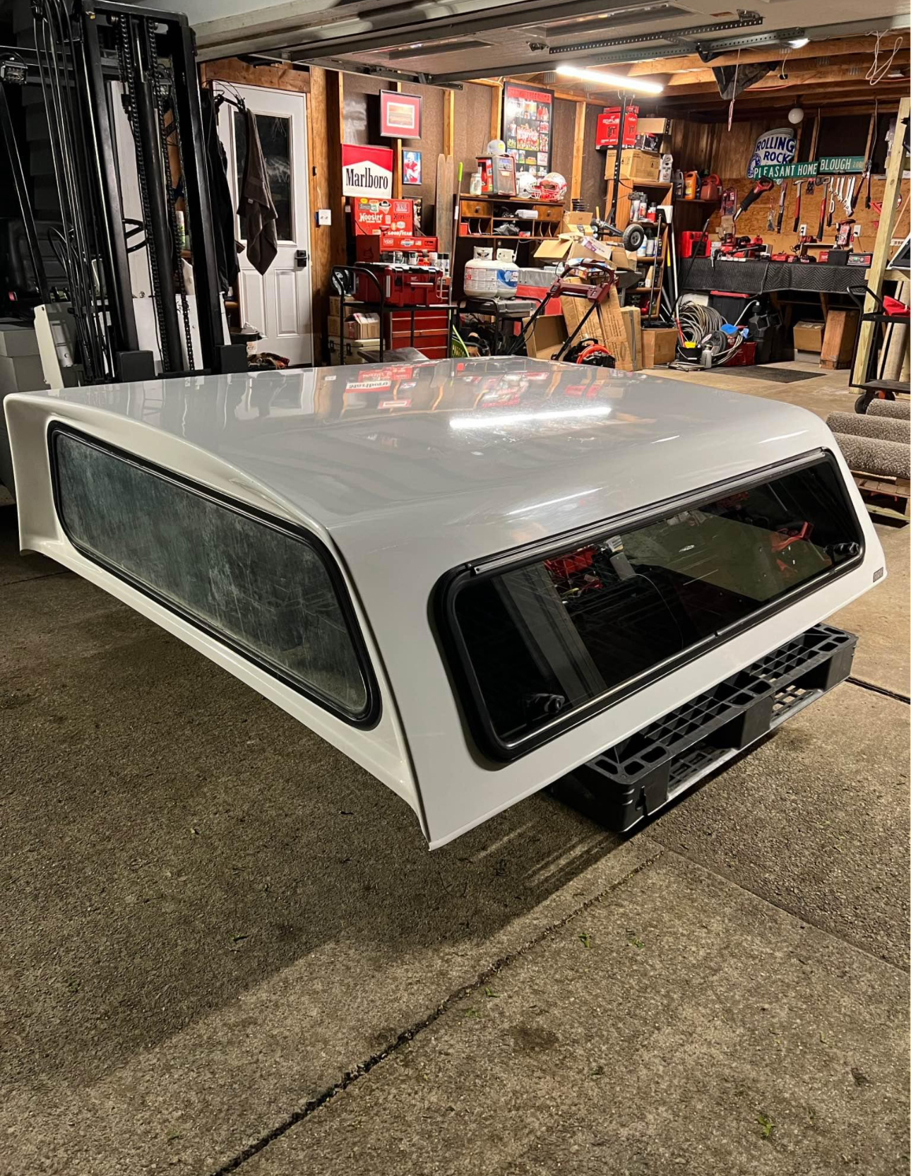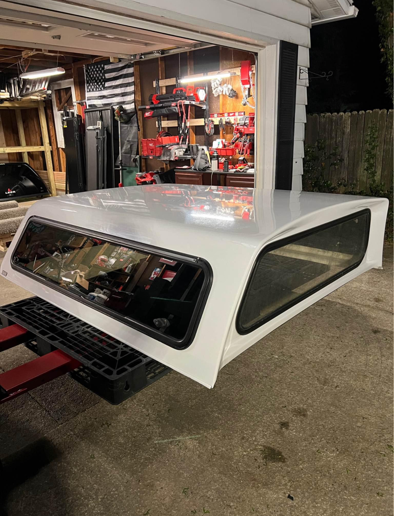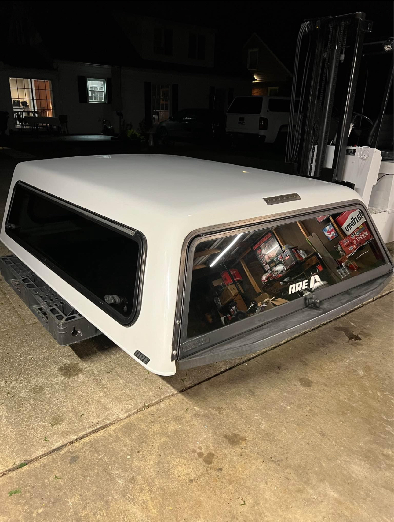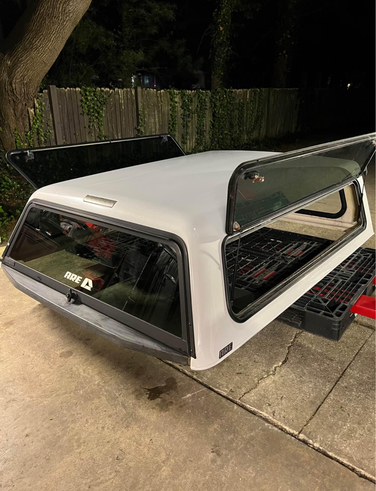 A.R.E. Truck cap for 2022 F150 with the 67″ bed. Has opening side windows with 5 matching locks. Two on each side and one in rear. Comes with new clamps and key!