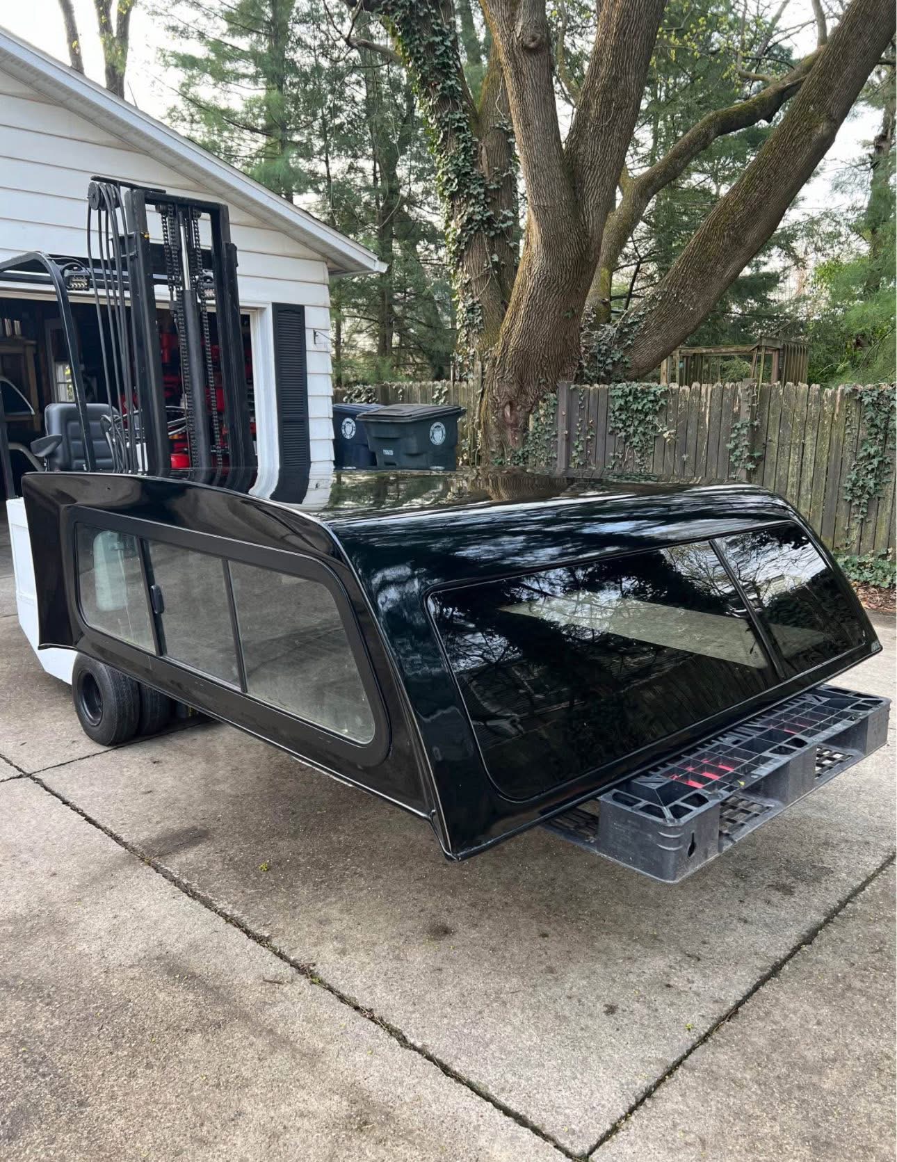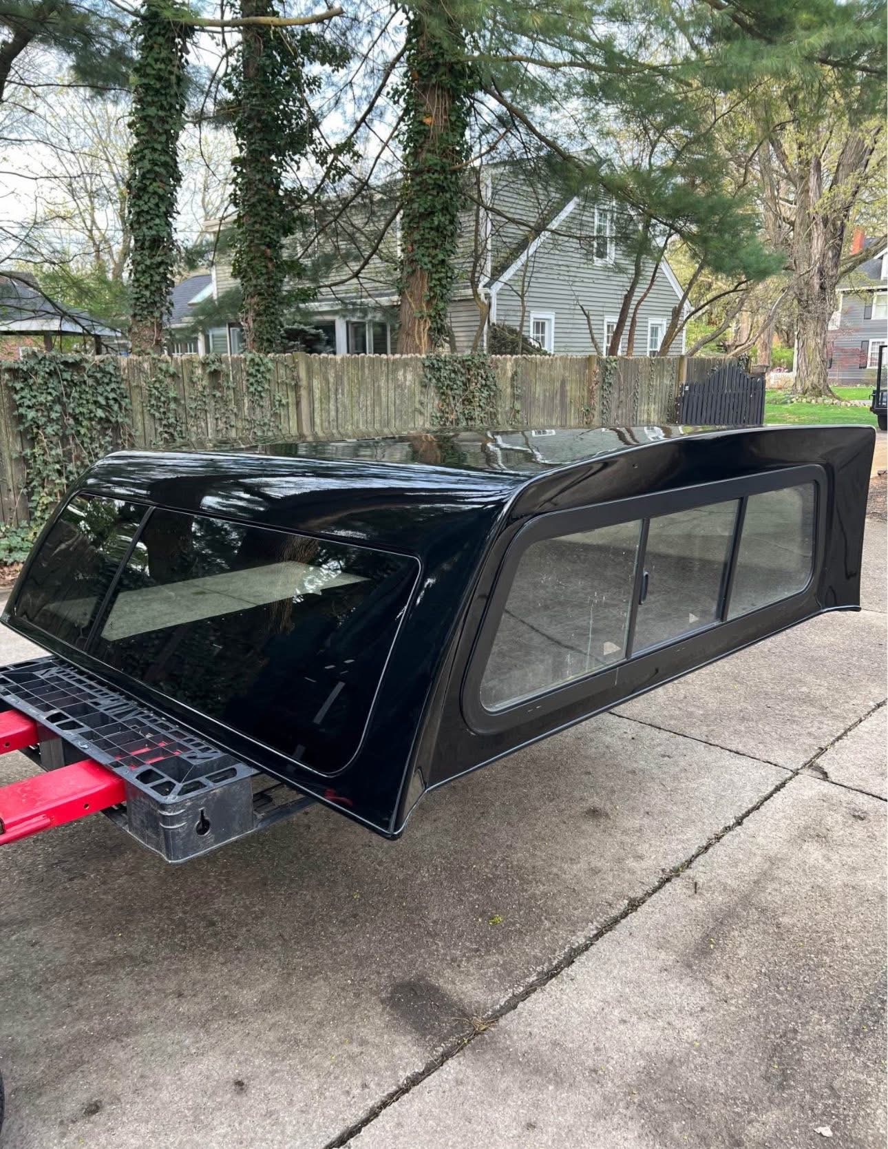 Paint code is “PX8” called “Black Crystal”. Has frameless windows on sides and rear, pop out side windows with screens. Front window has slider and also folds into bed.