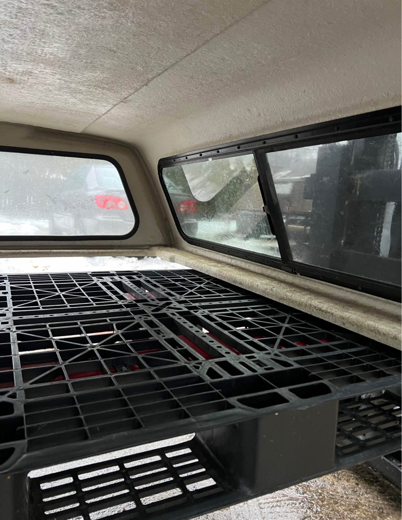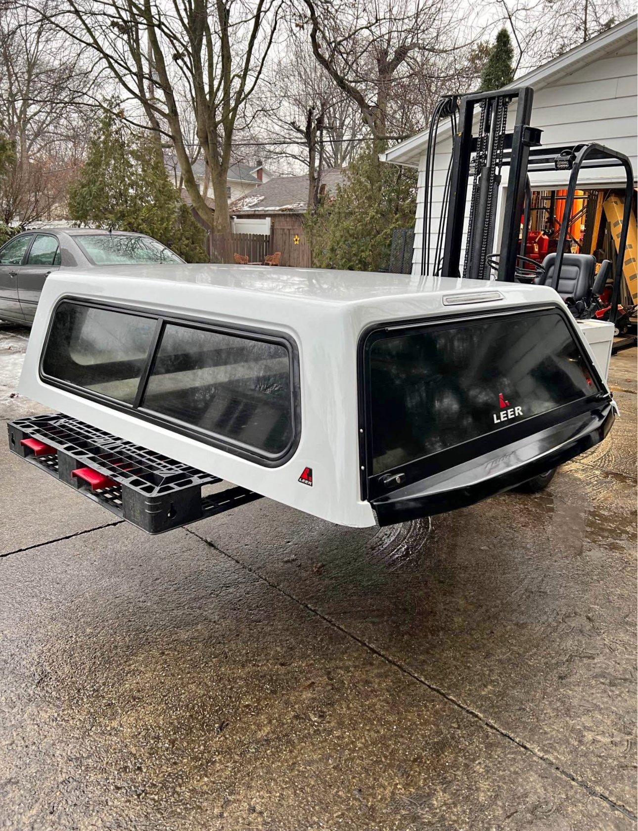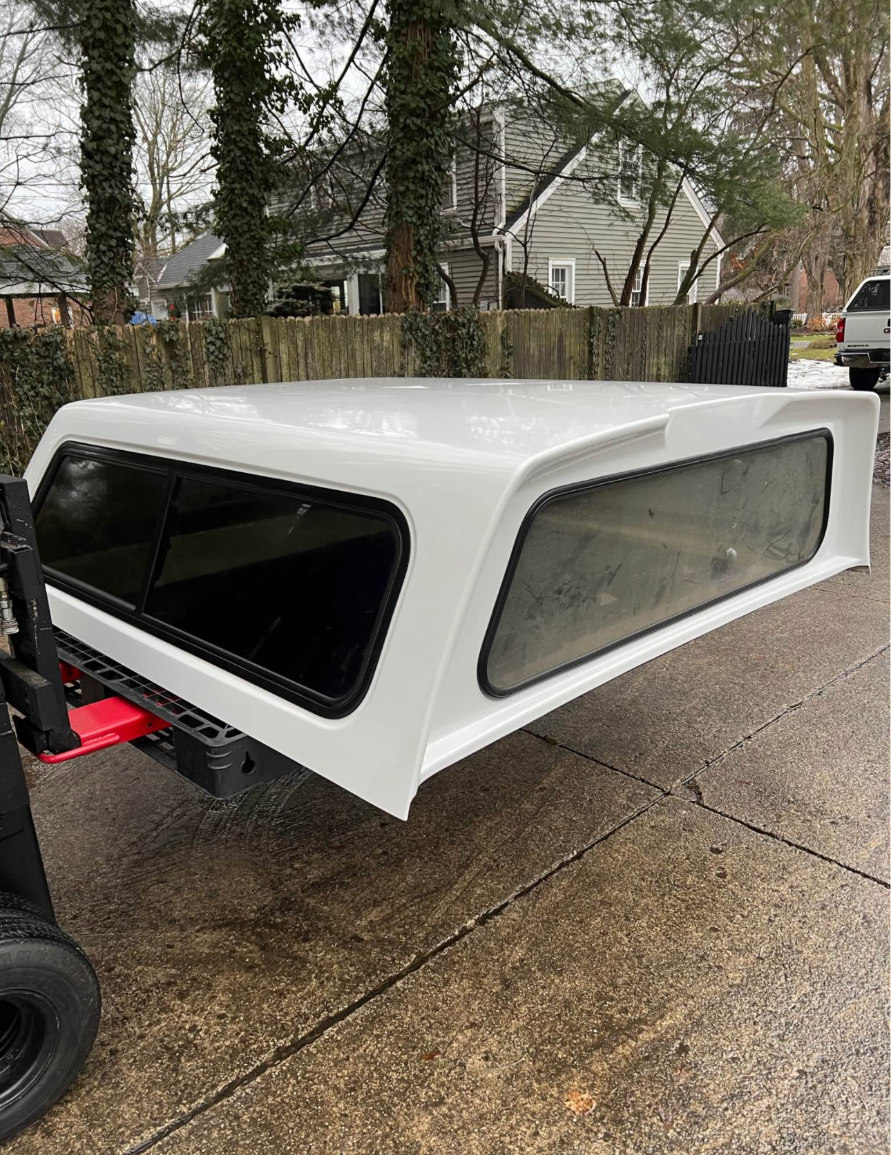 Color code is YZ Oxford White. Cap has brand new rear locks and handles. Front window is solid. Comes with clamps and keys