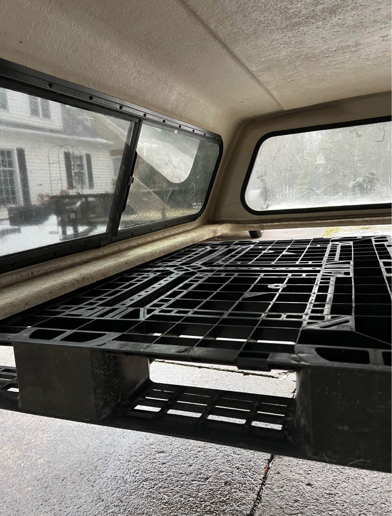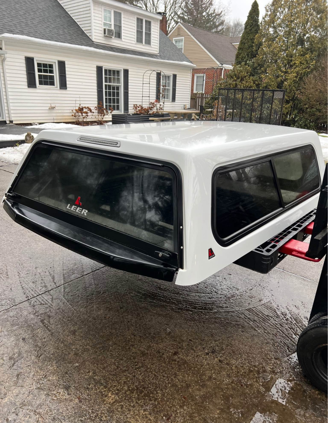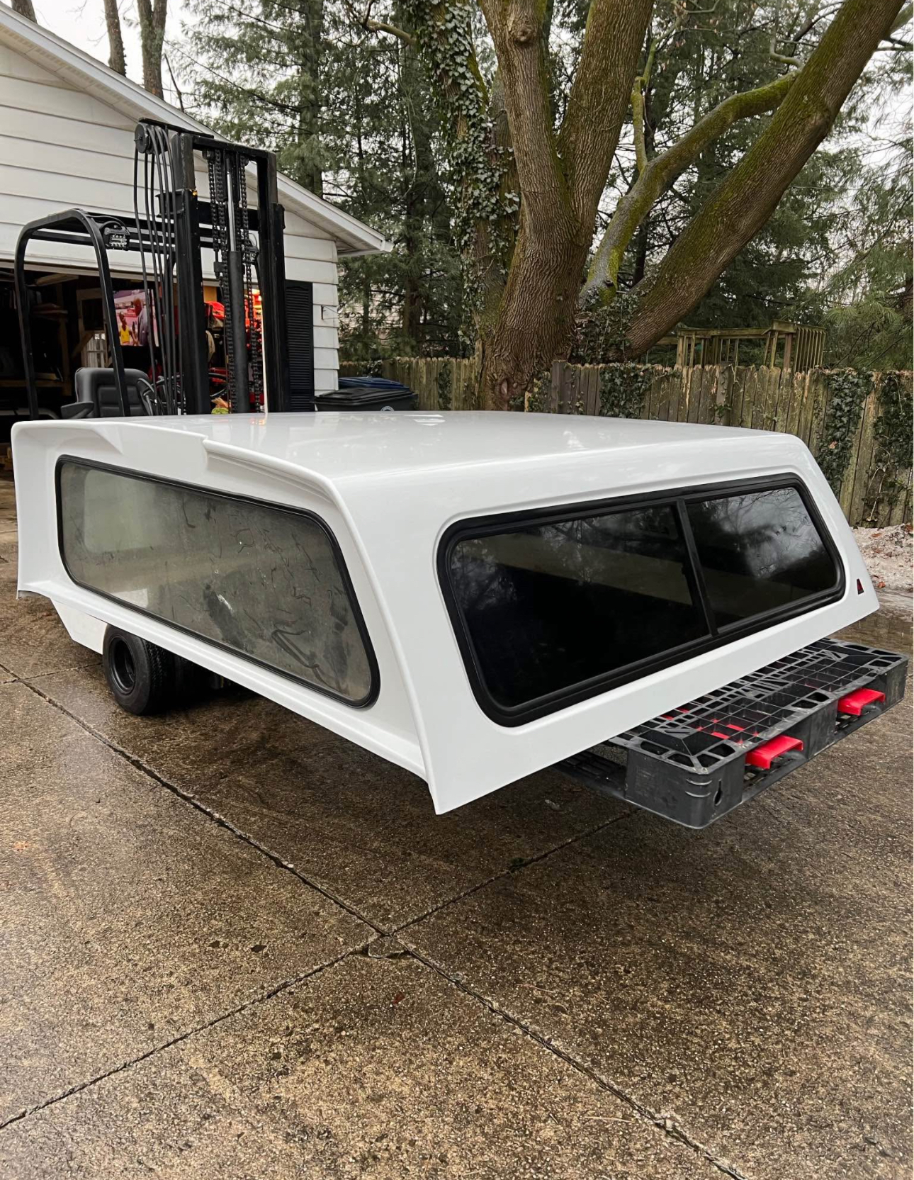 Color code is YZ Oxford White. Cap has brand new rear locks and handles. Front window is solid. Comes with clamps and keys