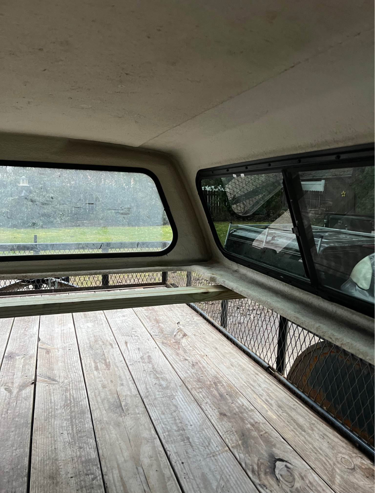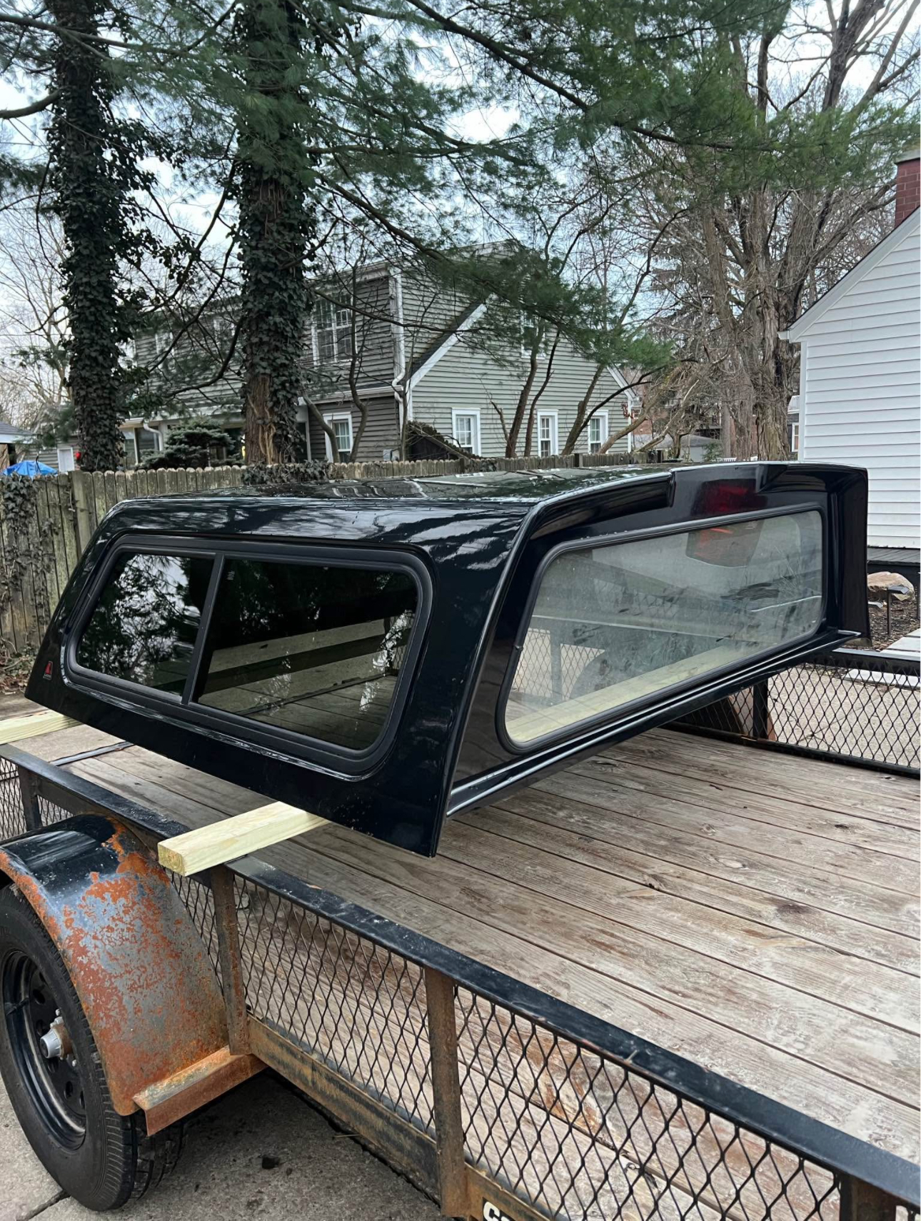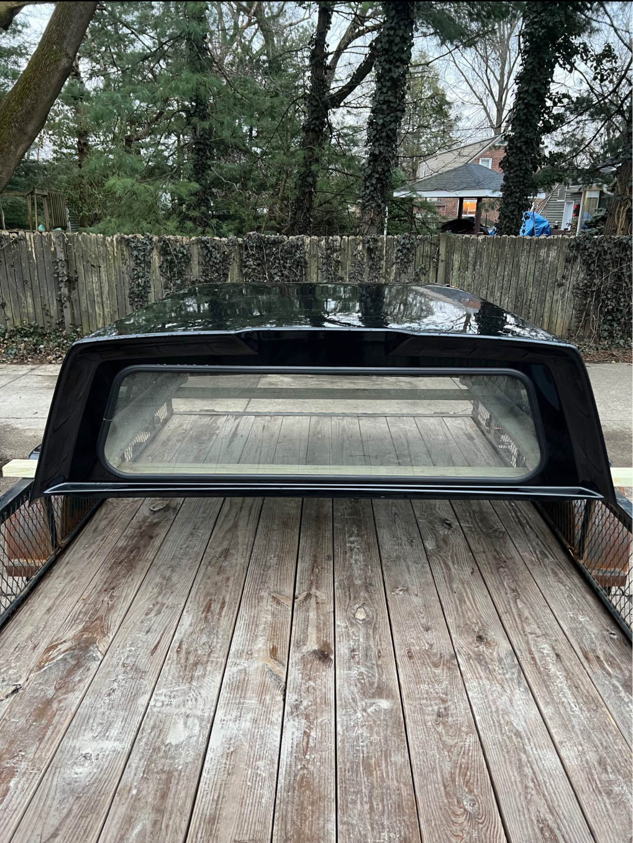 Paint code is “UH” called “Tuxedo Black”. In good condition, couple small chips and on corners. Has new struts, new locks. Front window is solid, side windows have slider. Comes with clamps and keys