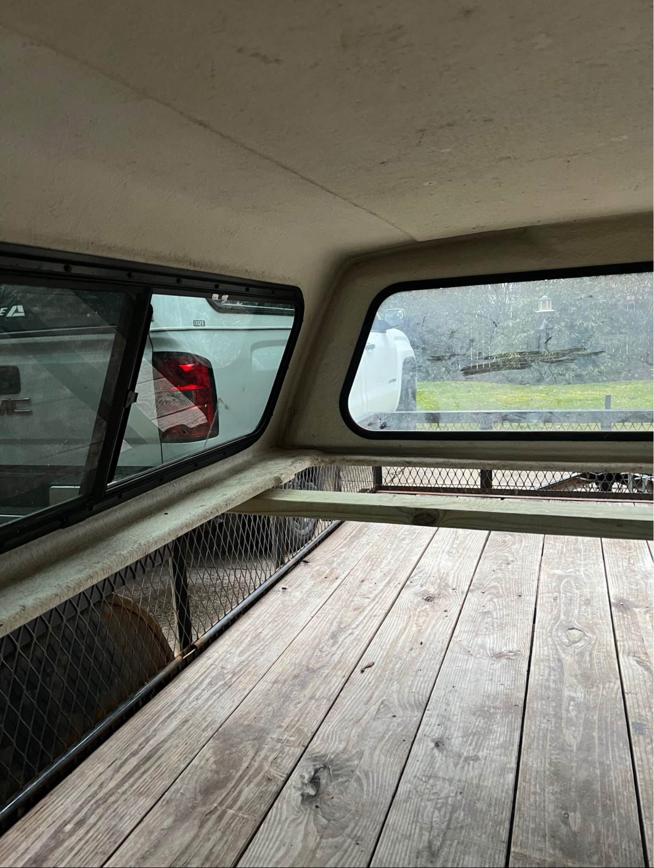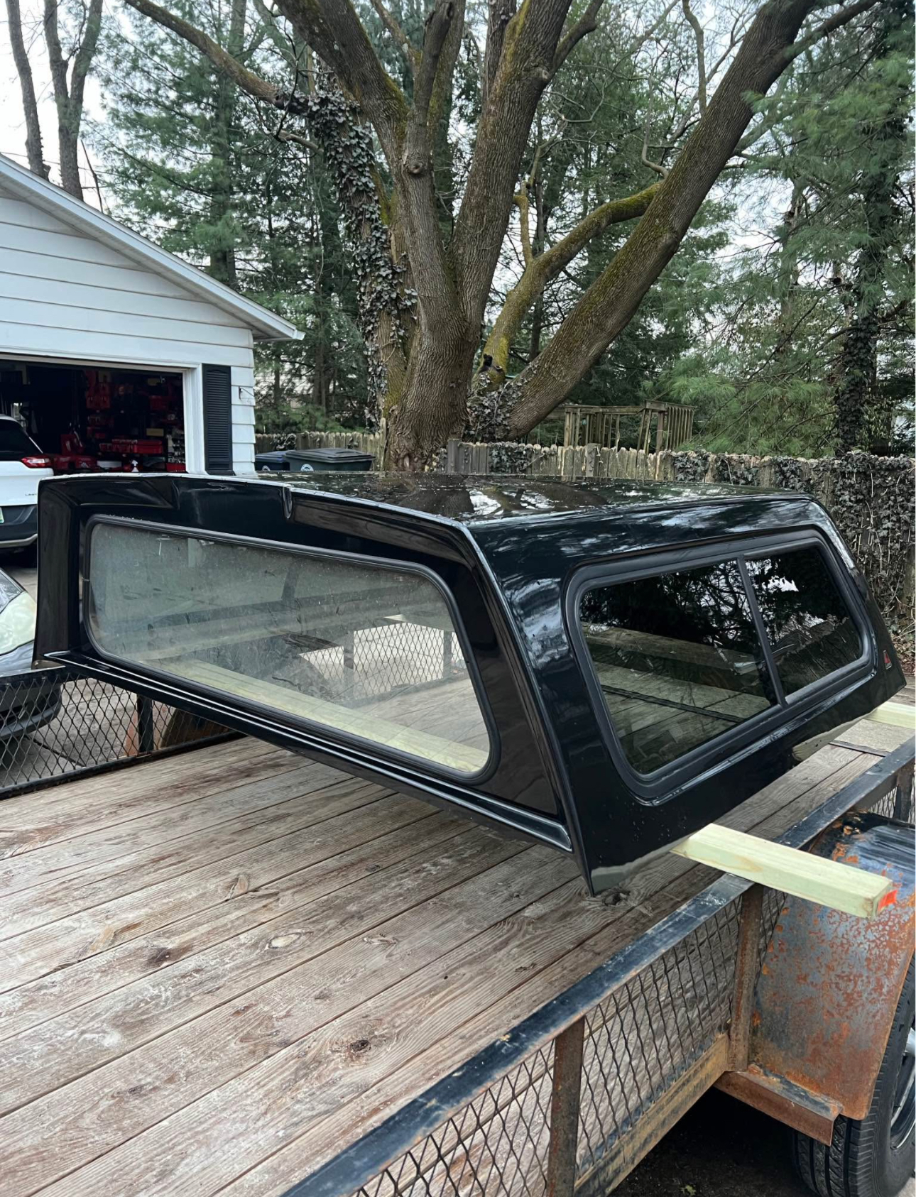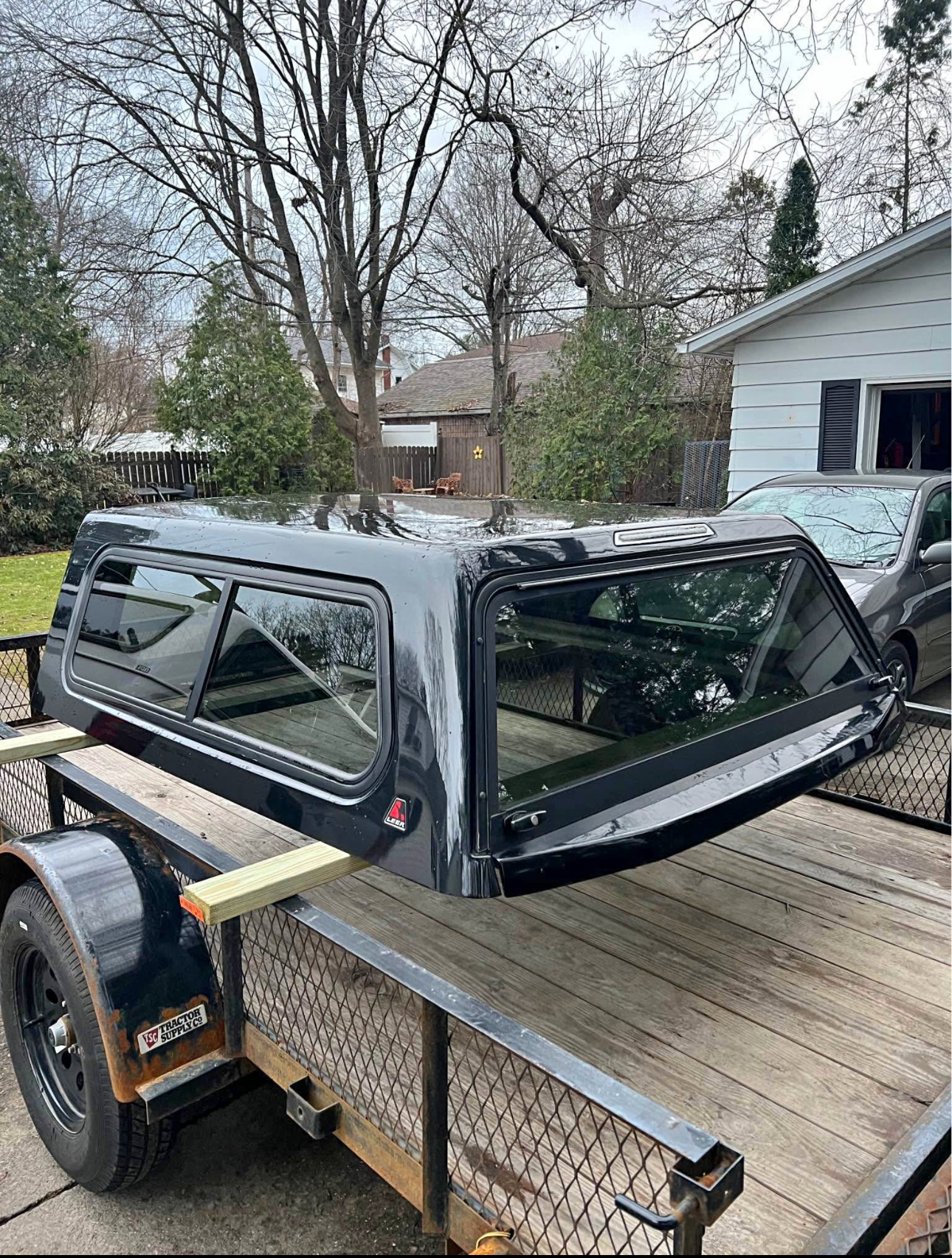 Paint code is “UH” called “Tuxedo Black”. In good condition, couple small chips and on corners. Has new struts, new locks. Front window is solid, side windows have slider. Comes with clamps and keys
