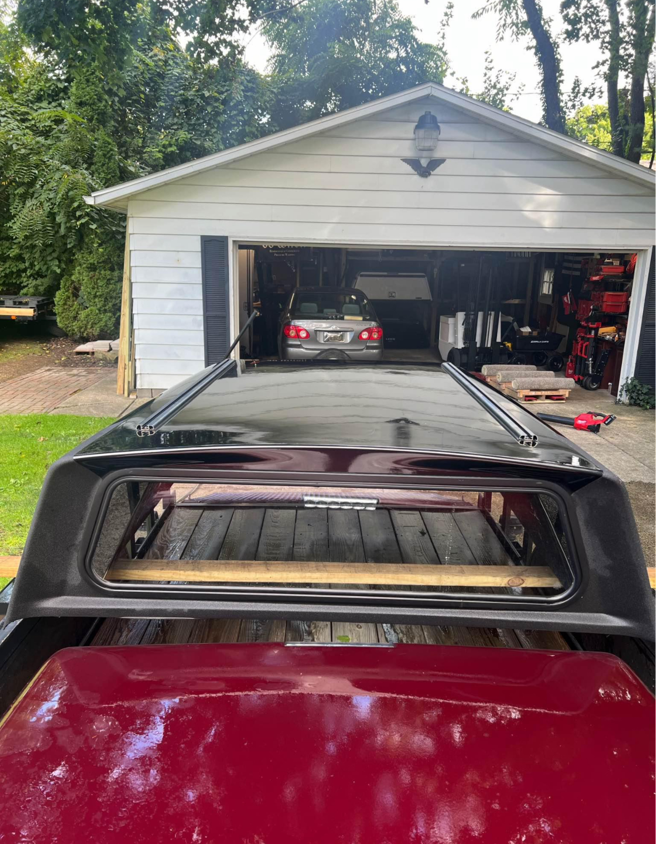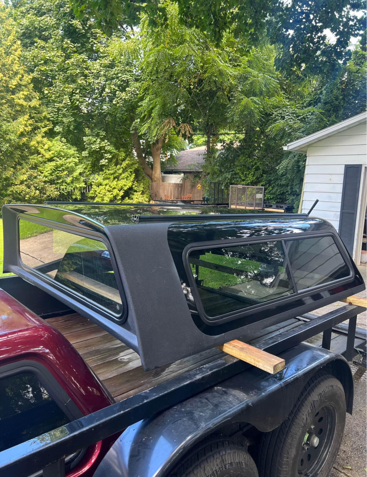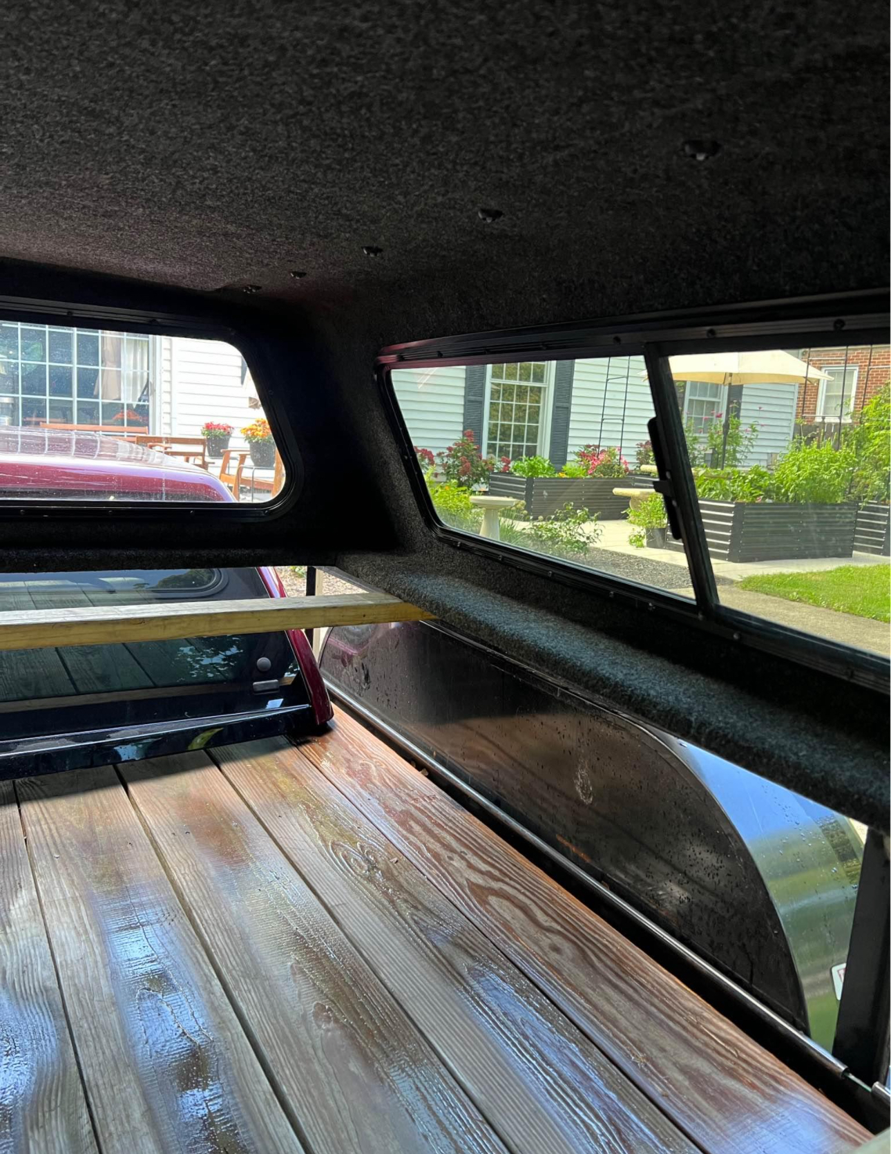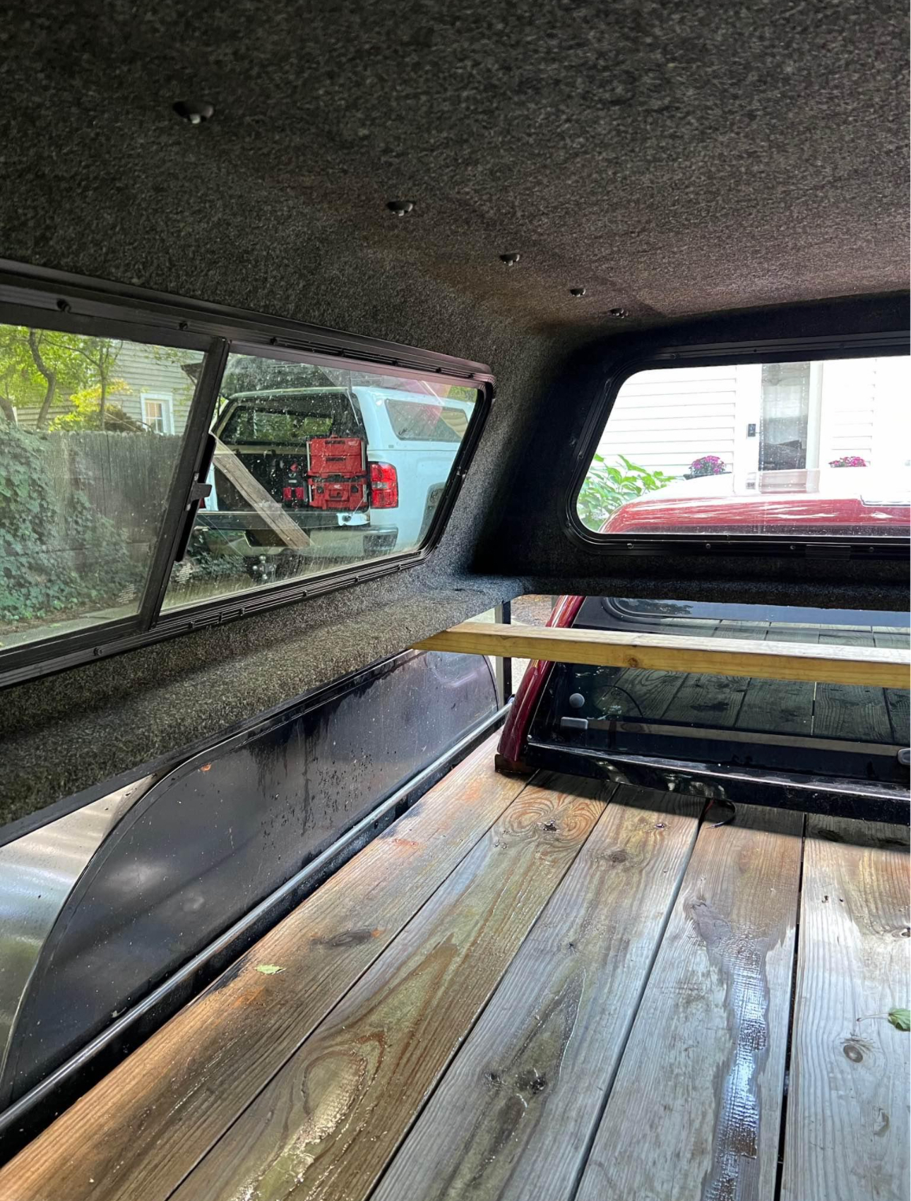 This cap comes like this from factory. Has interior liner, interior lighting, roof rack guides on top. I have some roof rack bars and baskets I will sell separately if interested. Sliding side windows, solid front window. Comes with clamps and key