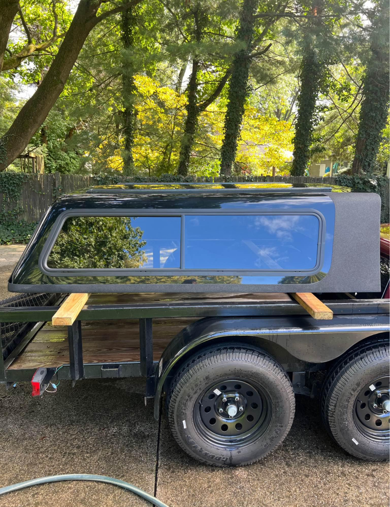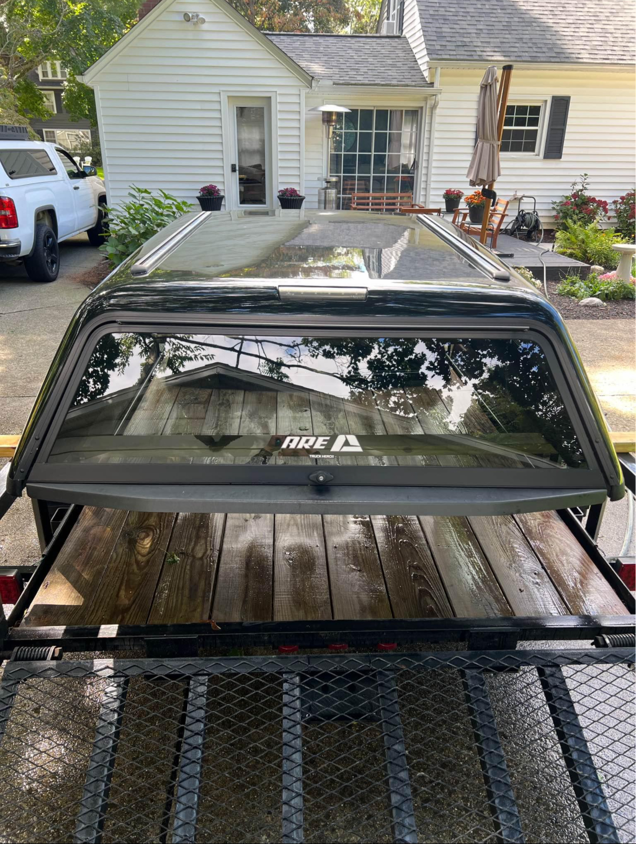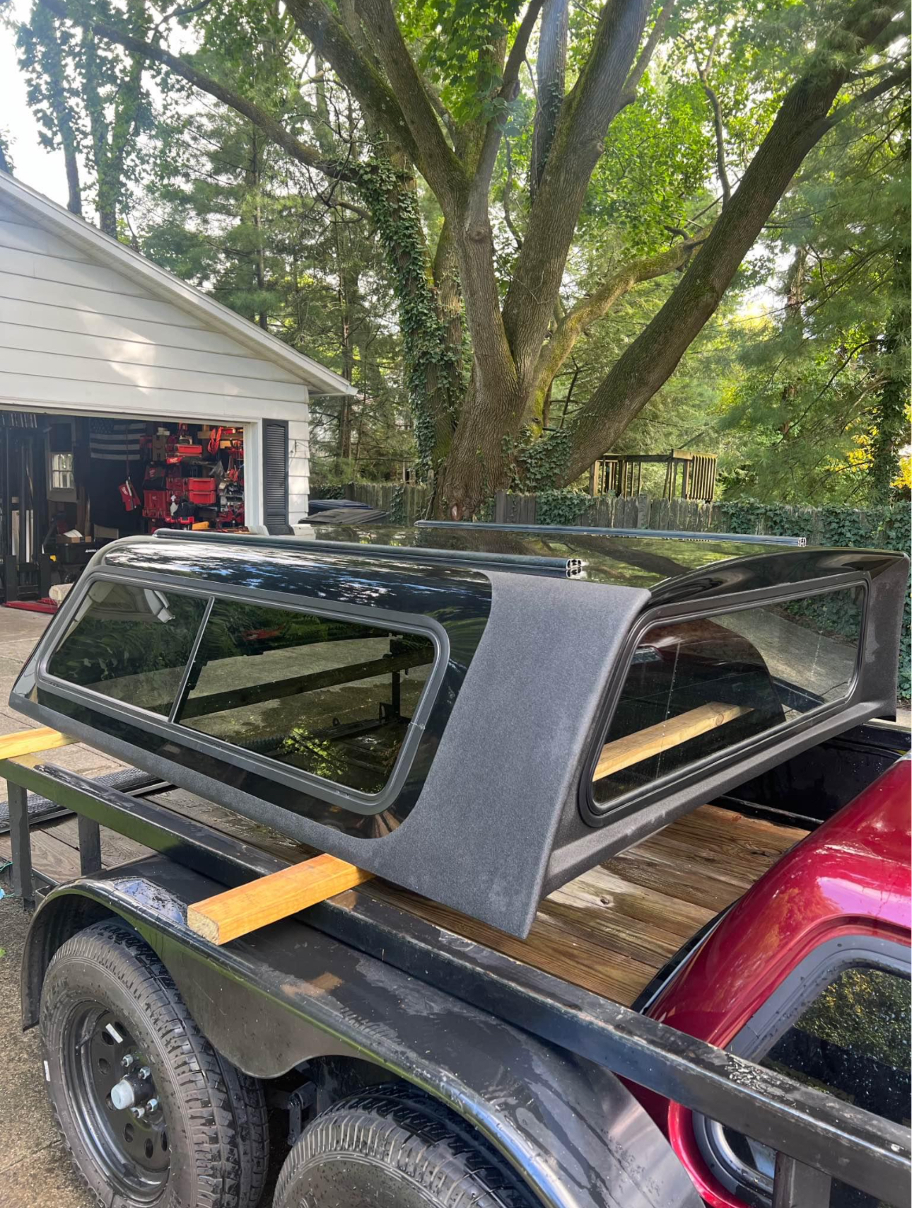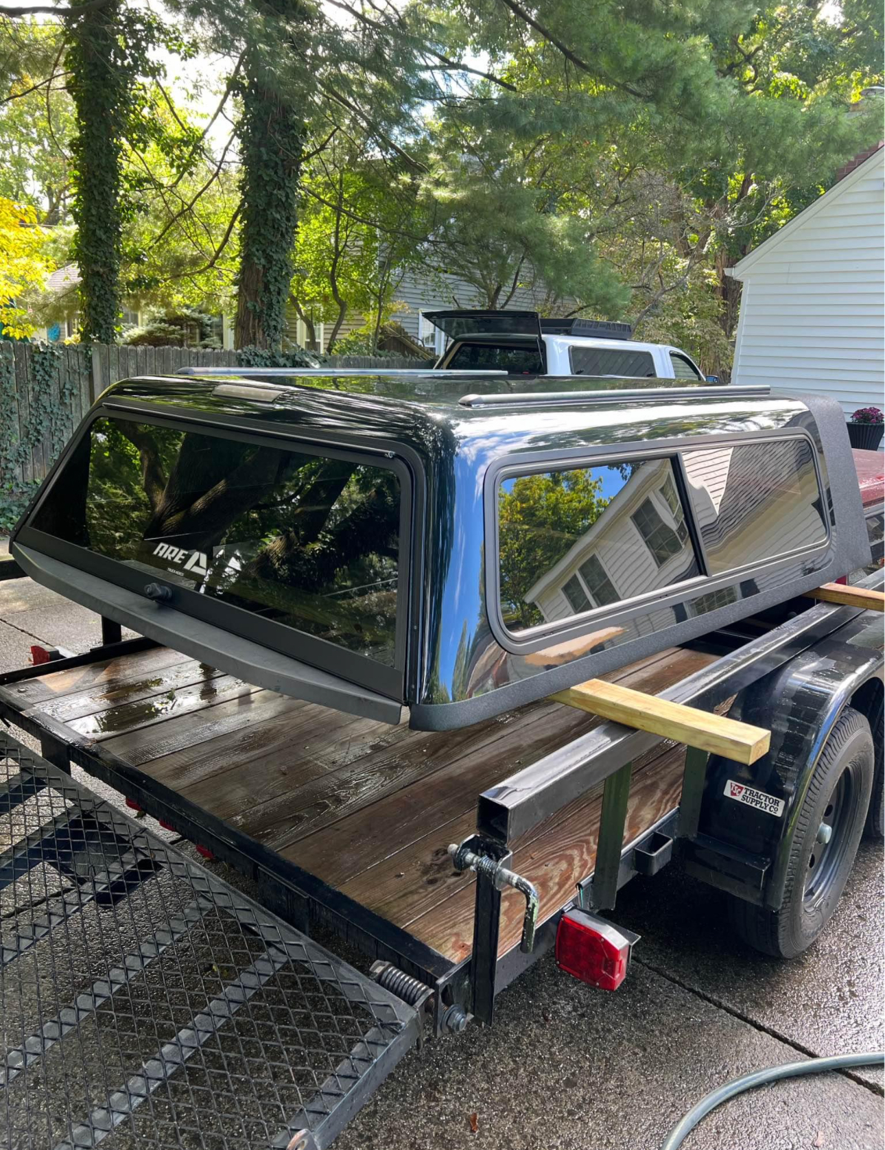 This cap comes like this from factory. Has interior liner, interior lighting, roof rack guides on top. I have some roof rack bars and baskets I will sell separately if interested. Sliding side windows, solid front window. Comes with clamps and key
